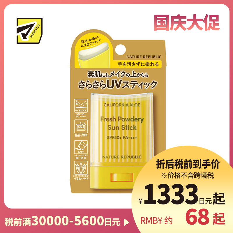 [商品名称]NATURE REPUBLIC 不粘手易涂抹 芦荟防晒棒 SPF50+ PA++++ 24g 面部身体通用 不泛白 清爽不粘腻 高倍防护 自然乐园